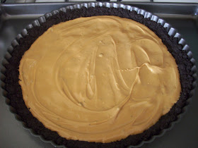 Pour over cooled tart and spread so chocolate bottom is covered with peanut butter.